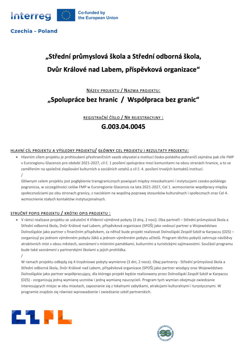 „Dolnośląski Zespół Szkół w Karpaczu / Střední průmyslová škola a Střední odborná škola, Dvůr Králové...