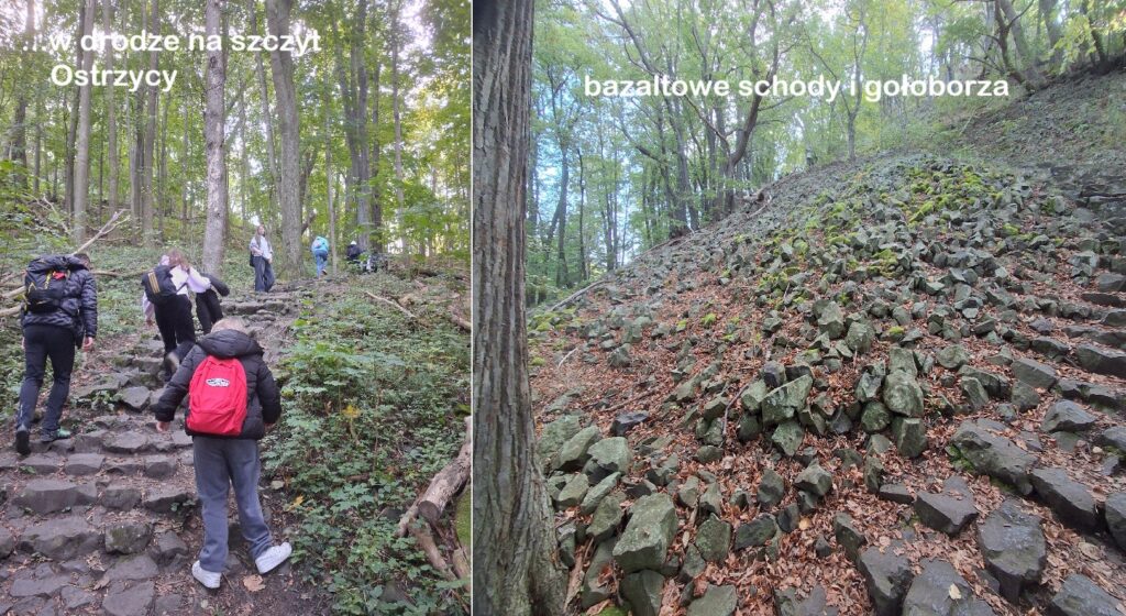 W ramach terenowych zajęć, uczniowie zwiedzili dwa obiekty, relikty dawnej działalności wulkanicznej Ostrzycę Proboszczowicką i Organy Wielisławskie.