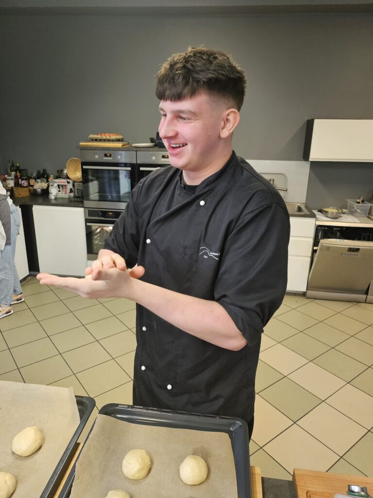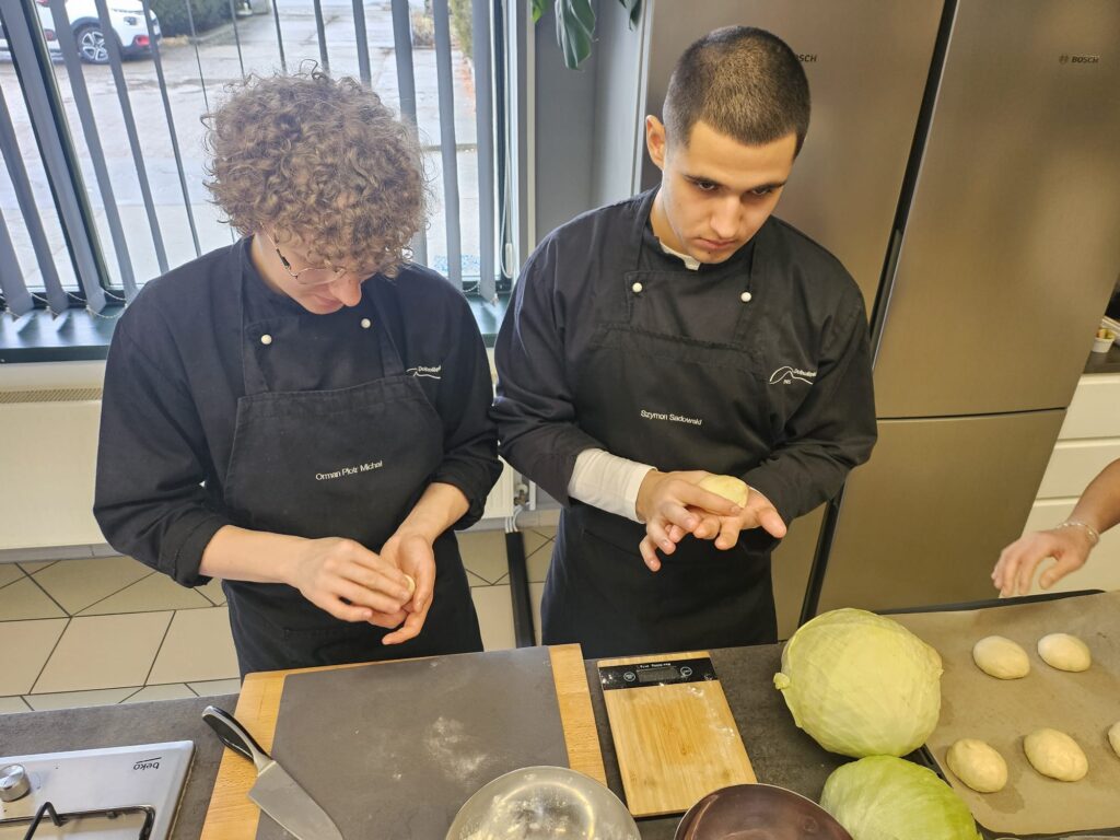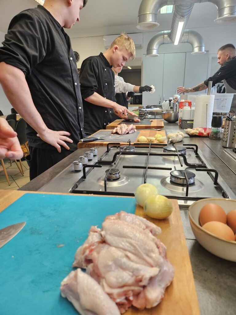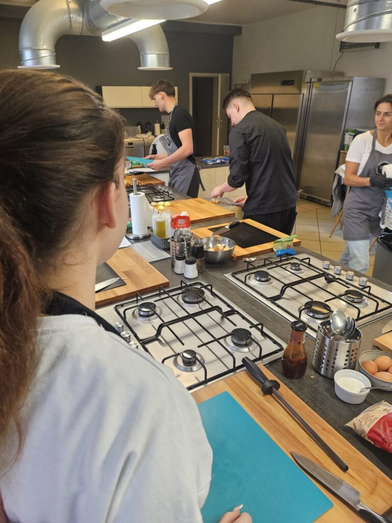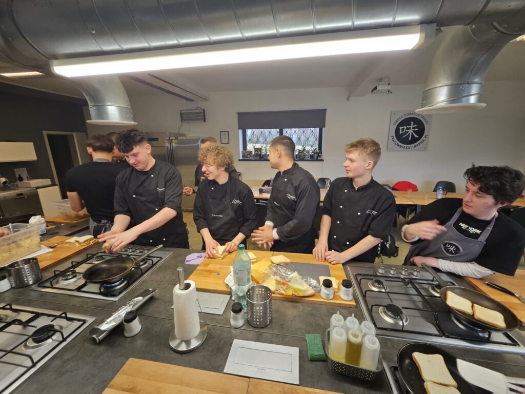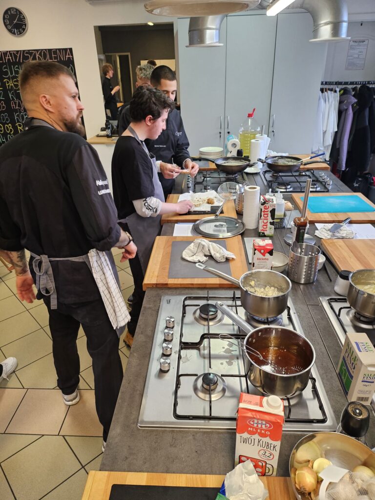 Uczniowie z klasy III TG w dniu 01.03.2025 szkolili się na trzecim już kursie w ramach projektu „Regionalna gastronomia dla Dolnego Śląska”. Kurs „Kuchnia amerykańska” przeprowadzony był przez wspaniałego mistrza Pana Bartosza Dębskiego. Przygotowano następujące potrawy: